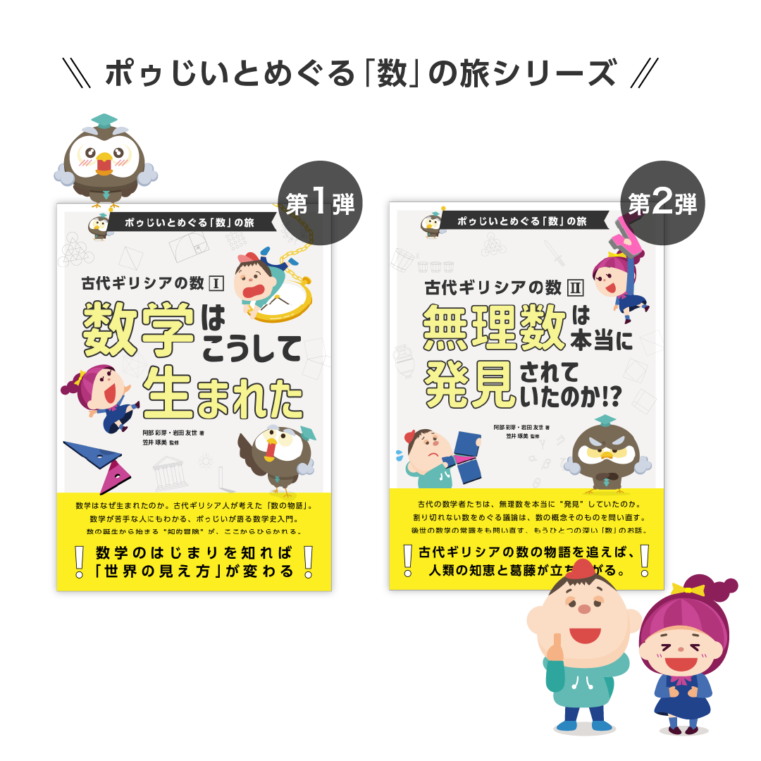対話形式でやさしく解説した電子書籍シリーズを発売しています。中高生はもちろん、大人の学び直しにもぴったり。数学の知識がなくても楽しめるやさしい数学史入門です。